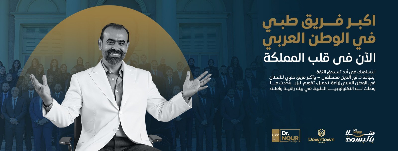يقود قسم طب وتجميل الأسنان في عيادات داون تاون الطبية فريق دكتور نور الدين مصطفى، أحد أكبر وأبرز فرق تجميل وزراعة الأسنان في الشرق الأوسط. يتميز فريقنا بخبرة تتجاوز العقدين، مدعومة بأحدث تكنولوجيا الأسنان ونخبة من الاستشاريين وأعضاء هيئة التدريس الحاصلين على أعلى الدرجات العلمية العالمية. نلتزم بتقديم رعاية طبية غير مسبوقة تتميز بالدقة المتناهية وأعلى نسب النجاح، في بيئة عصرية ومريحة.